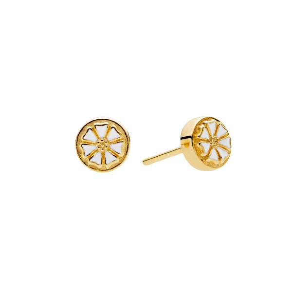 Forgyldte runde Marguerit ørestikker i Sølv fra Lund Copenhagen