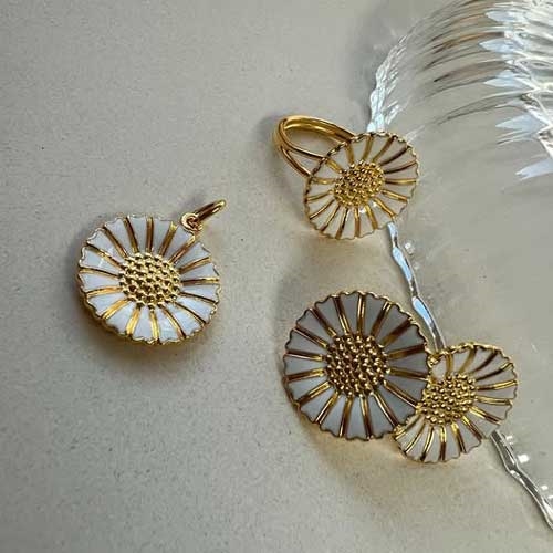 Forgyldte Marguerit ørestikker i Sølv fra Lund Copenhagen