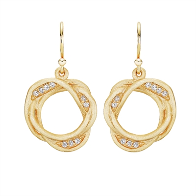 Ørehængerne er med 3 bånd og besat med zirkoniasten. Diameteren er 15,0 mm