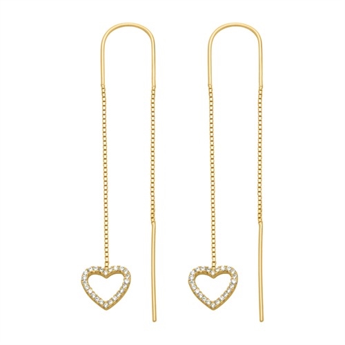 Forgyldte ørehænger med hængende hjerter i Sølv
