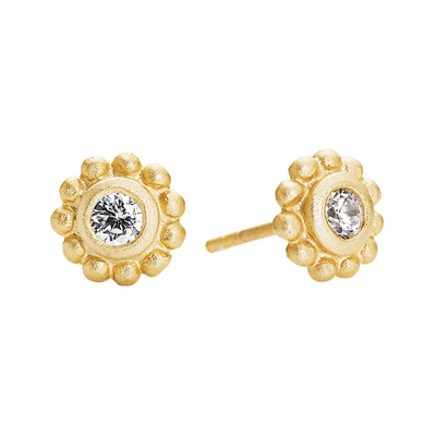 Forgyldte runde ørestikker i Sølv med zirkonia fra Lund Copenhagen
