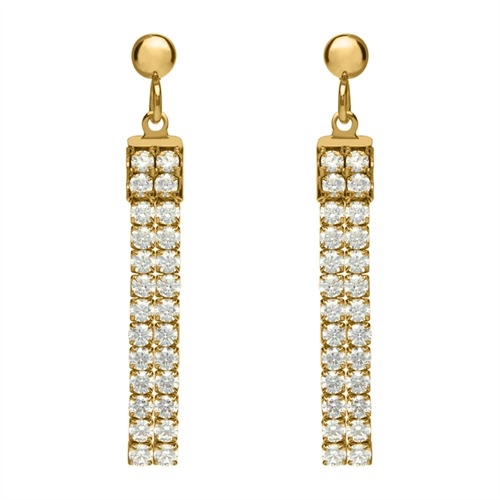 Øreringenes overflade er poleret og med 2 rækker af hængende funklende zirkoniasten