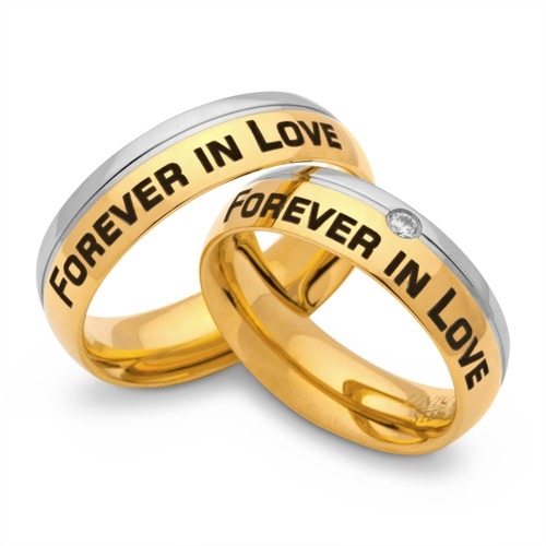 Forgyldte vielsesringe i Stål - Udvendig gravering