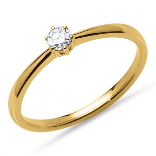Solitairering i 14 karat Guld med brillantsleben diamant - 0,15 ct