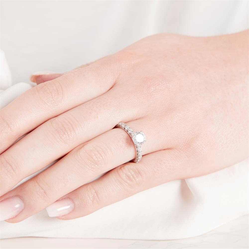Ringen er med 12 mindre zirkonia sten, der pryder den øverste ringskinne. I midten af den smalle ringskinne er der en stor zirkonia sten som er indfattet i en klo, hvilket bevirker at stenen reflekterer i direkte lys