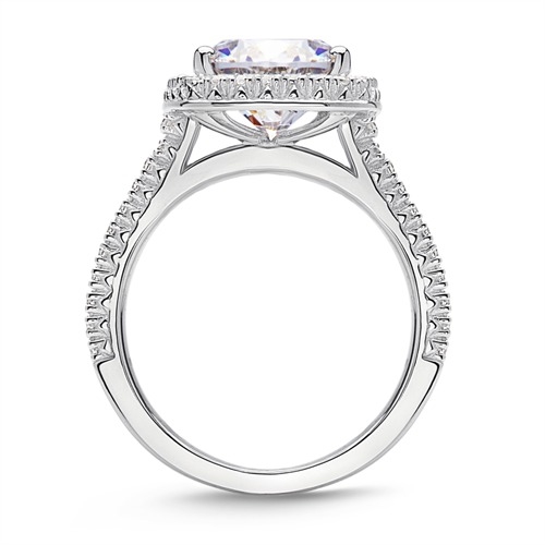 Ringen er med en rund zirkoniasten omgivet af en kvadratisk fatning. Kanterne er afrundet og besat med zirkoniasten