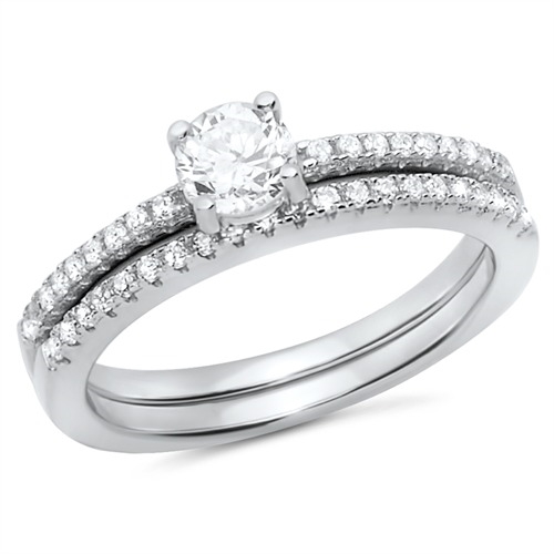 2 yndige ringe i en besat med funklende hvide zirkoniasten