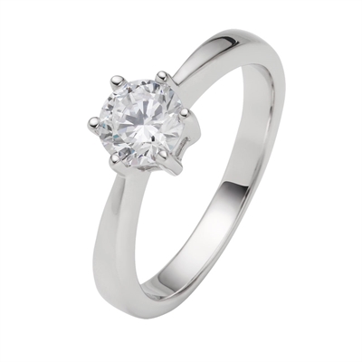 Ringen er med en flot funklende hvid zirkoniasten i en fatning med 6 grapper