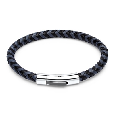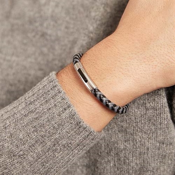 Gråt/Sort flettet læderarmbånd til herrer