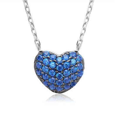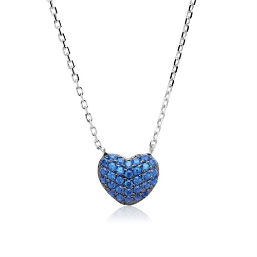 Halskæden er med et hjerte besat med en funklende blå zirkoniasten