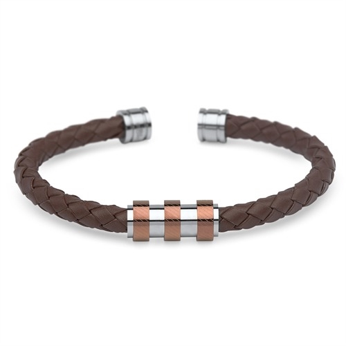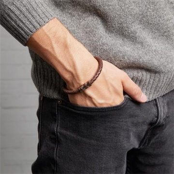 Herrearmbånd i brunt Læder og Stål