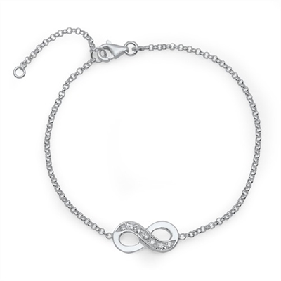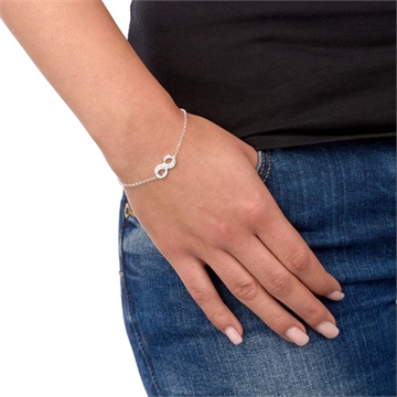 Armbåndets overflade er poleret og uendelighedstegnet er besat med zirkoniasten