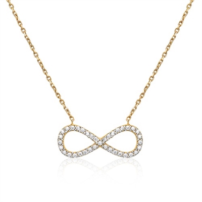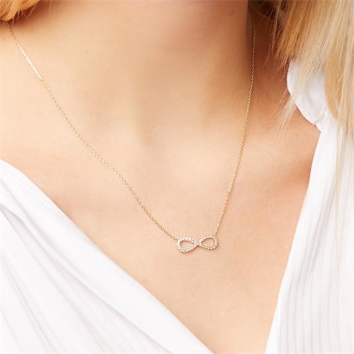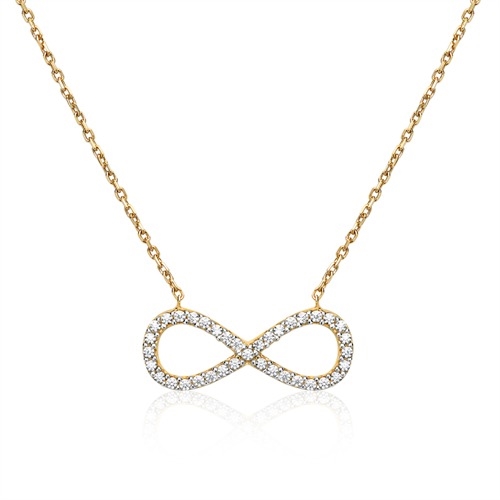Halskæden er med uendelighedsteget som vedhæng. Uendelighedstegnet er besat med funklende zirkoniasten