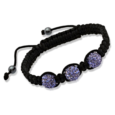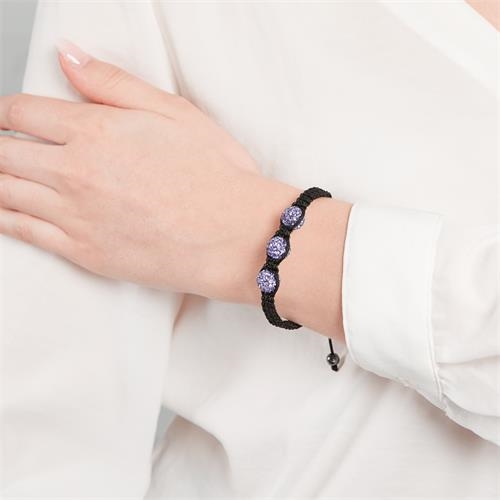 Knyttet armbånd i tekstil med 3 krystaller og hæmatit sten