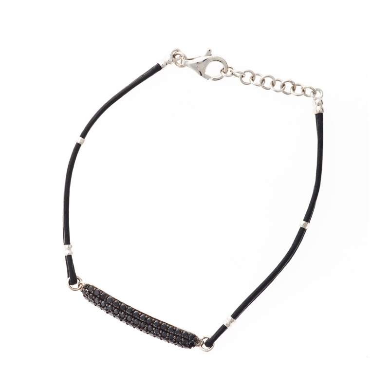 Sort læderarmbånd med zirkonia fra Lund Copenhagen