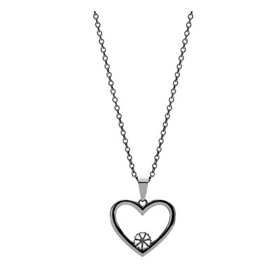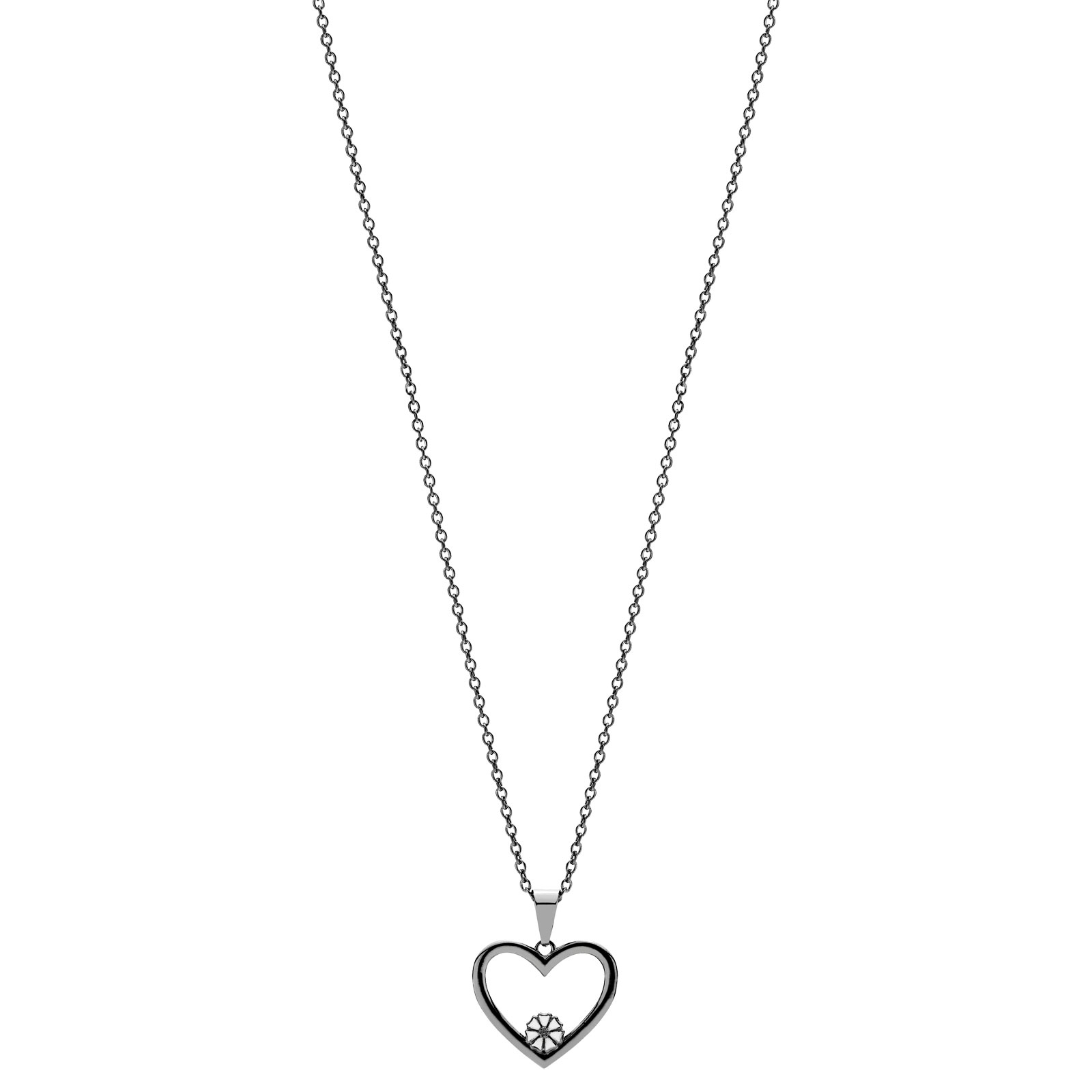 Halskæden er med et åbent hjerte og en hvid marguerit