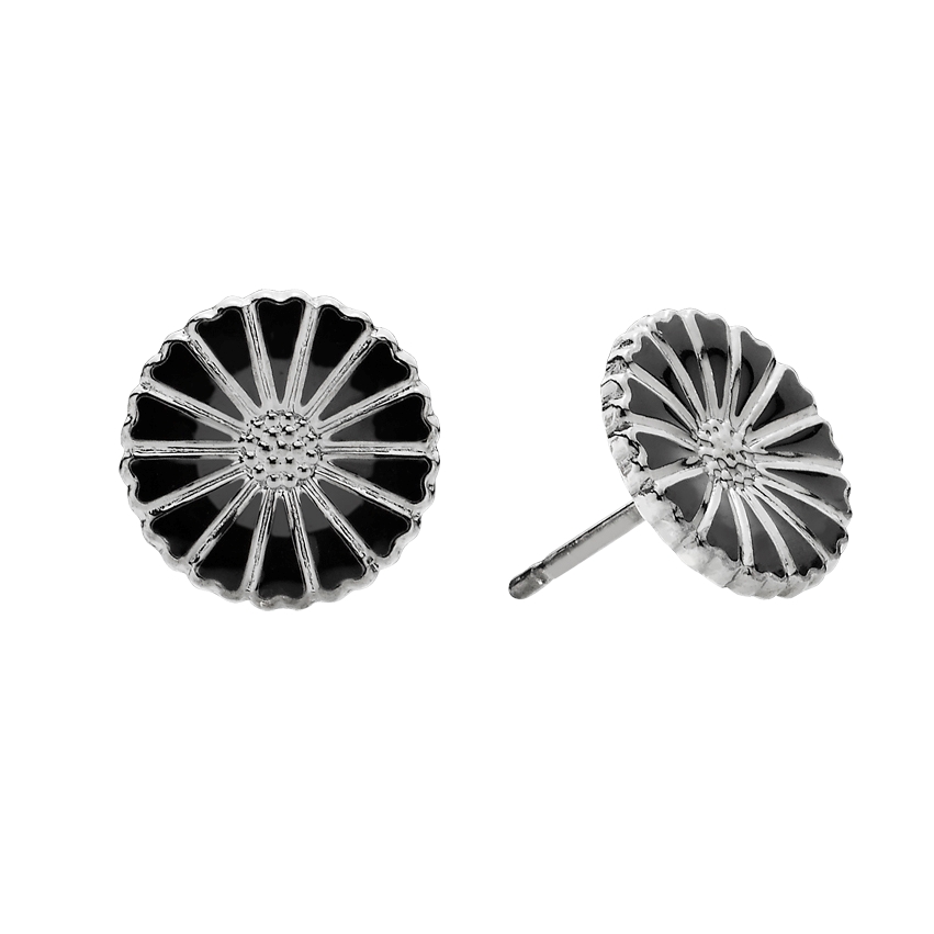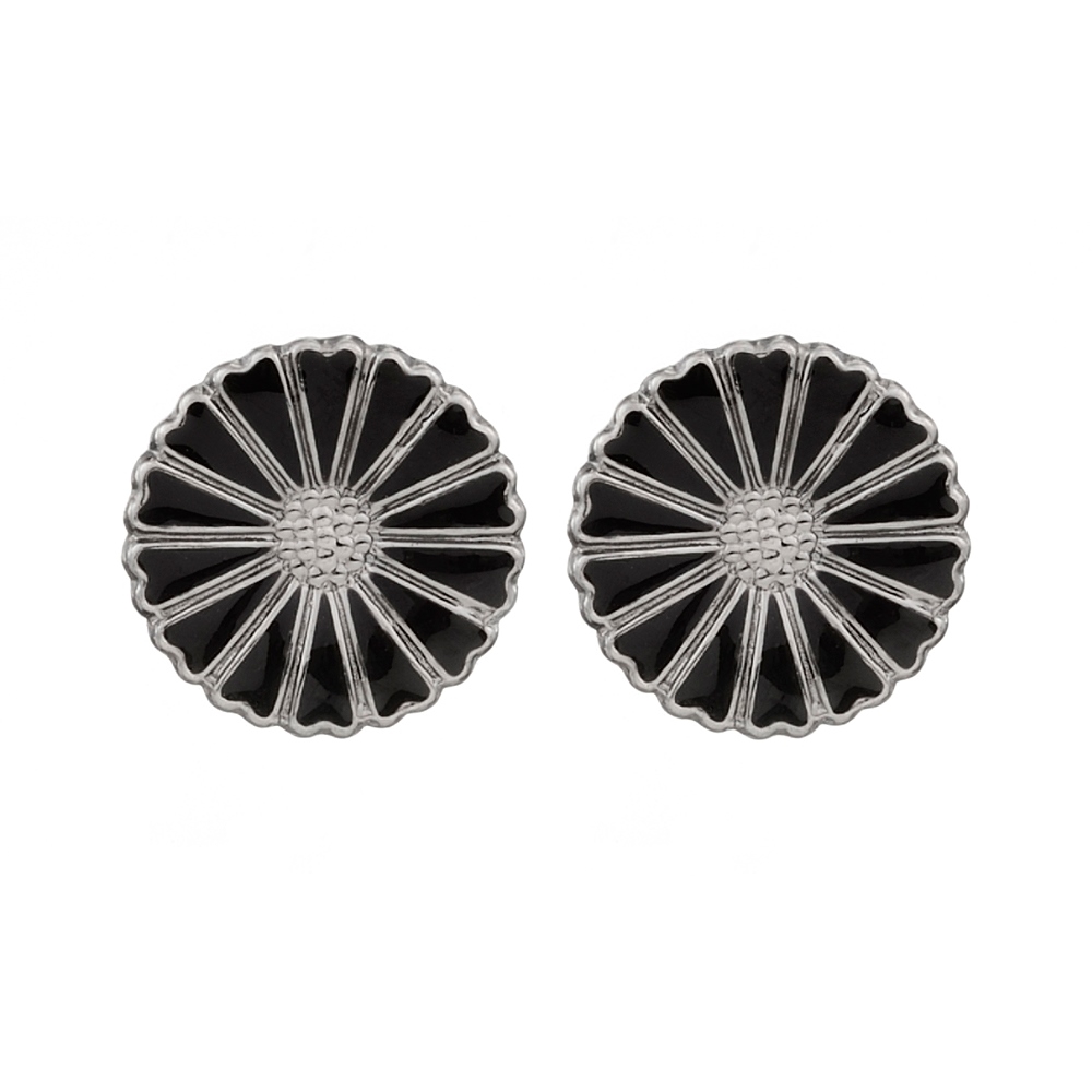 Sort rhodineret Marguerit ørestikker i sølv fra Lund Copenhagen