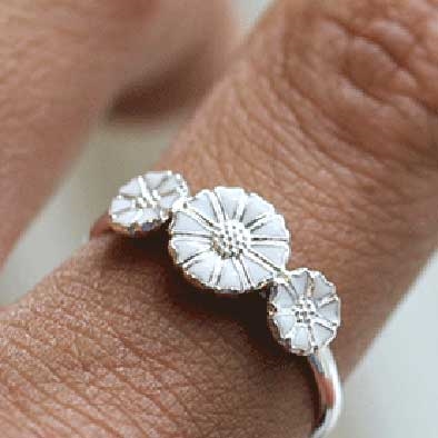 Ringen er med tre hvide margueritter med en diameter på 7,5 mm og 5,0 mm