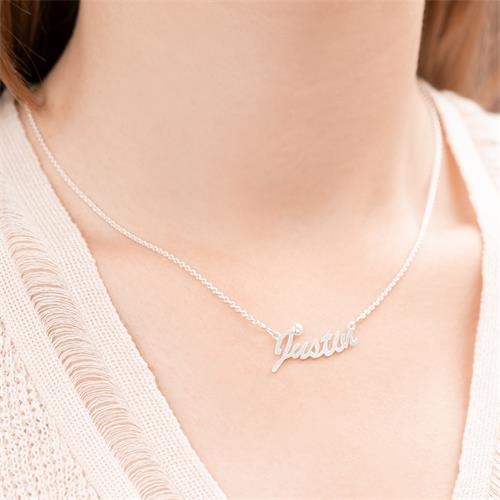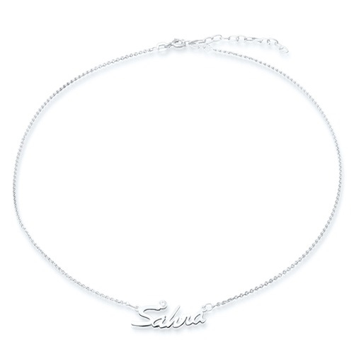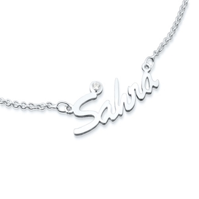 Navnehalskæde i sølv med zirkonia