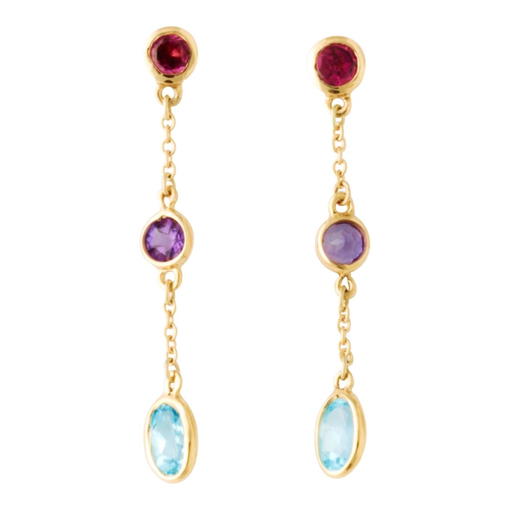 Ørehænger i 14 karat guld med blandede sten Lund Copenhagen