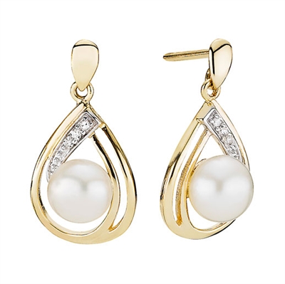 Ørehænger i 8 kt. Guld m. perler og diamanter