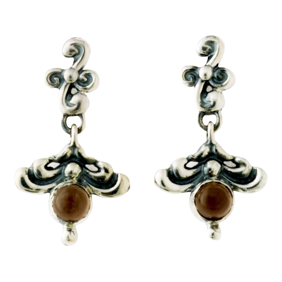 Oxyderet ørehænger i Sølv med røgkvartz fra Lund Copenhagen