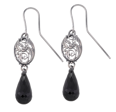 Ørehængerne er rustik oxyderet og med dråbeformet facetsleben onyx på 14 x 7 mm