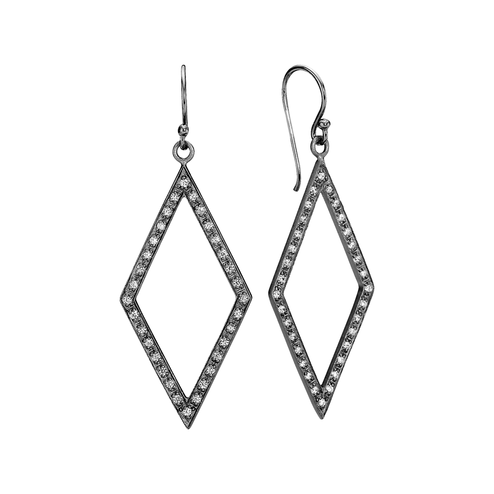Rudeformet ørehænger i sort rhodineret sølv besat med zirkonia fra Lund Copenhagen