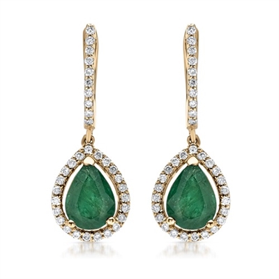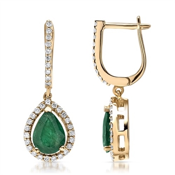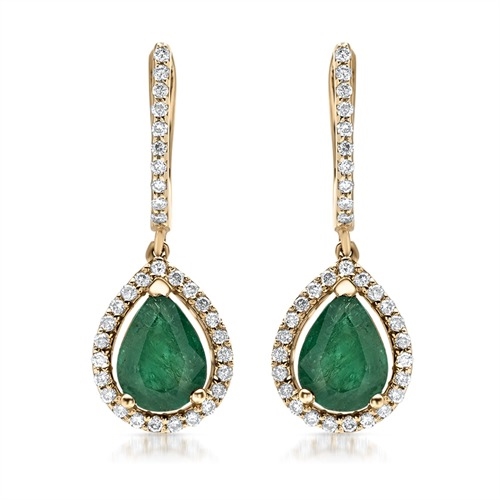 Ørehængere i 14 karat guld med diamanter og smaragd