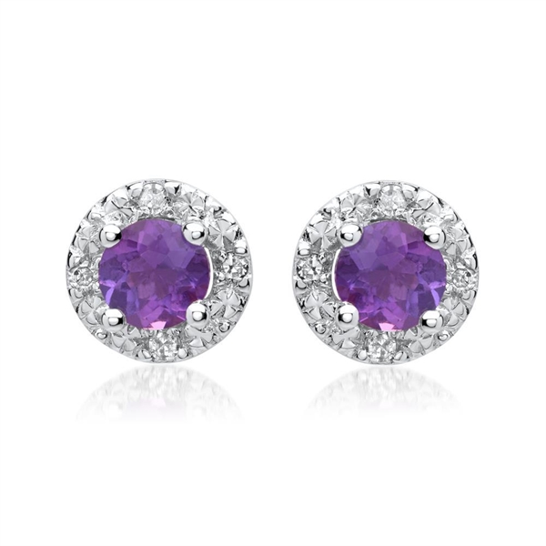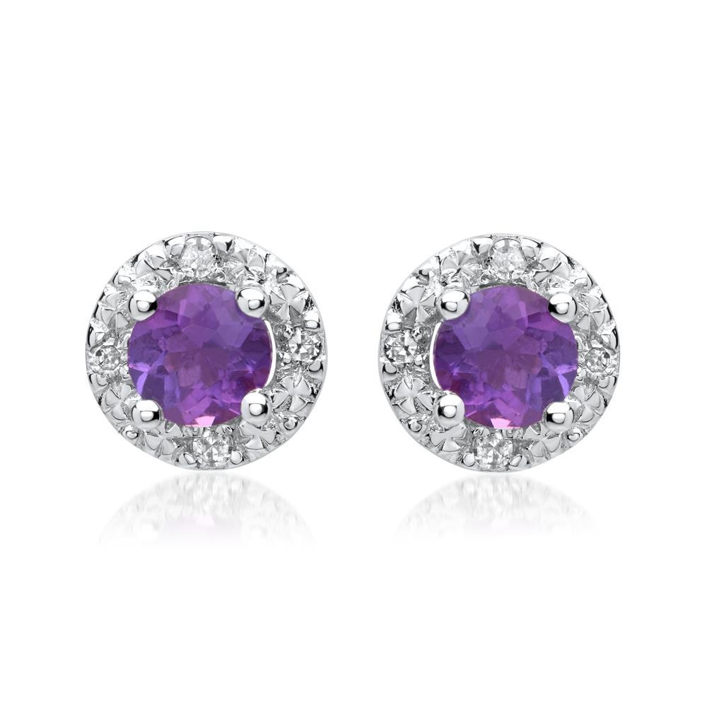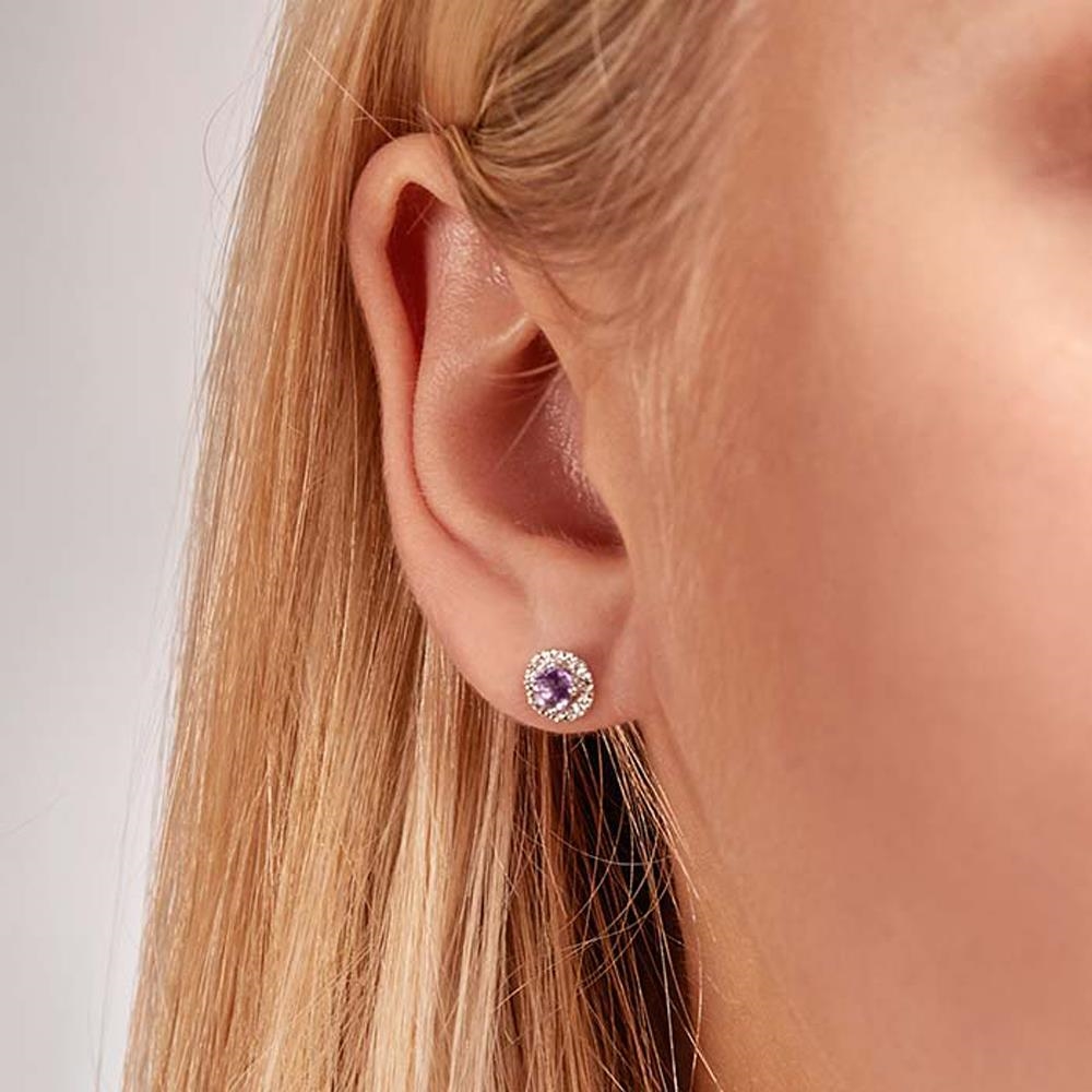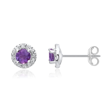 Ørestikkerne er besat med amtyst omgivet af funklende hvide diamanter