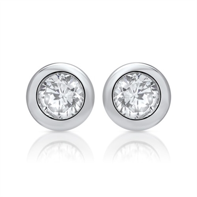 Runde ørestikker i Sølv med funklende zirkoniasten