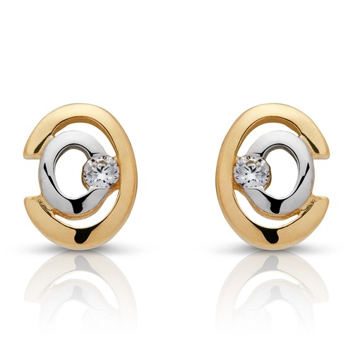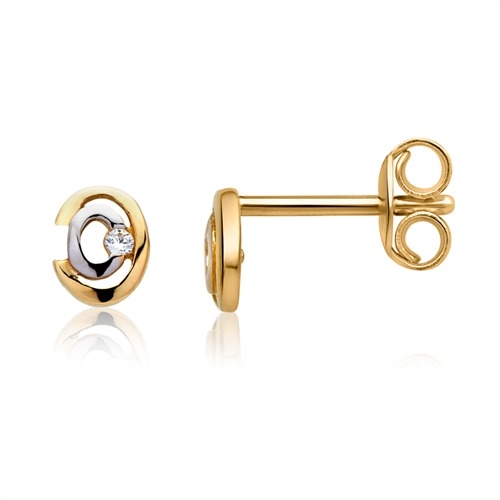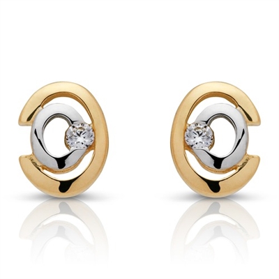 Ovale ørestikker i 8 karat Guld og Hvidguld med zirkoniasten