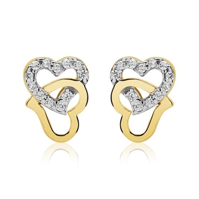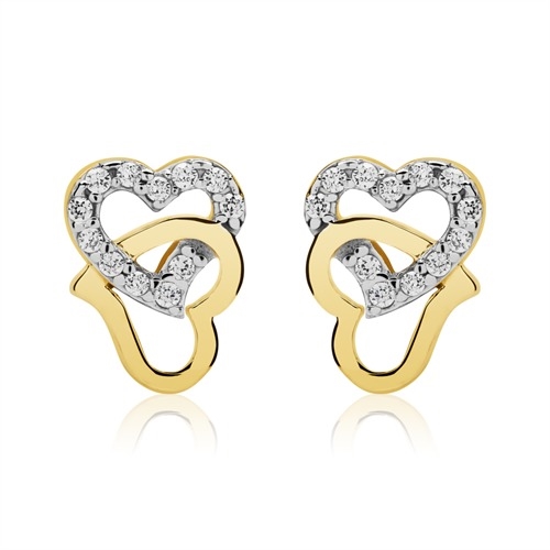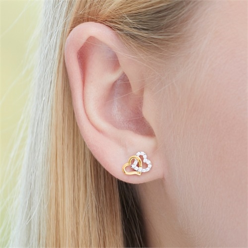 Ørestikker i 8 karat Guld med dobbelte hjerter