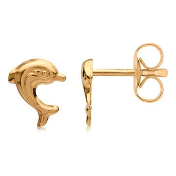 Ørestikker små glade springende delfiner i 9 karat Guld