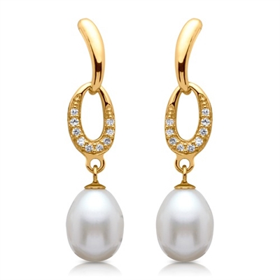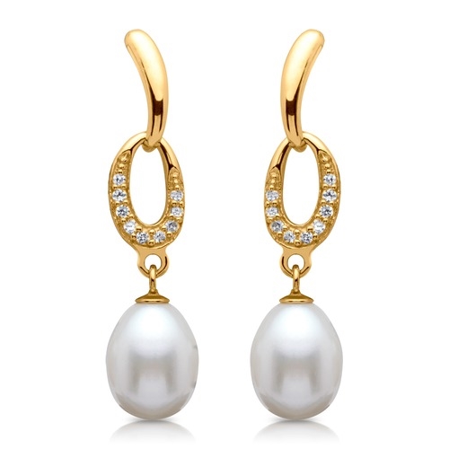 Forgyldt ørestikker i sølv med ferskvandsperle og zirkonia