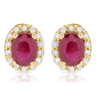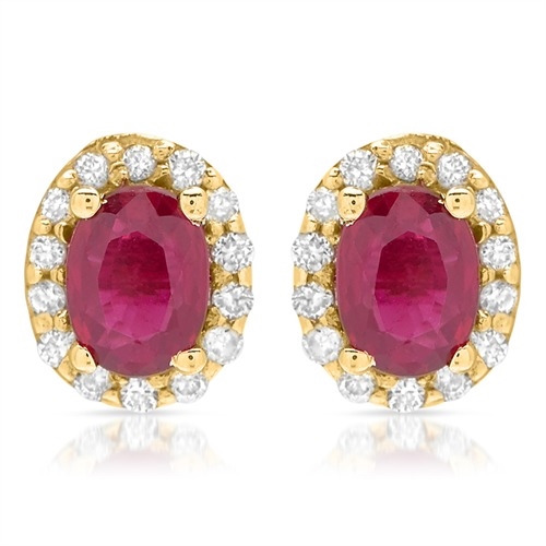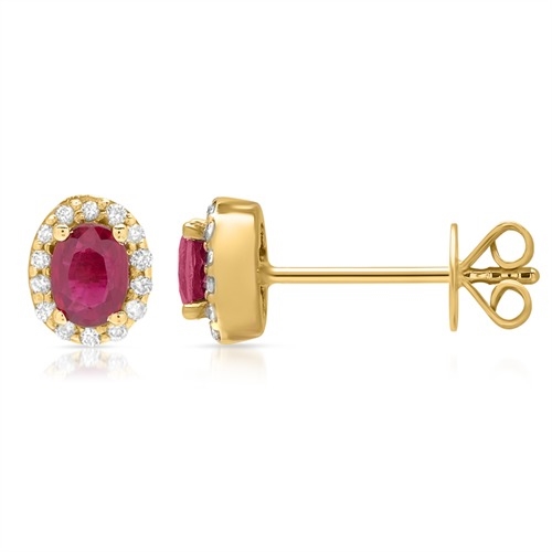 Ovale ørestikker i 14 karat Guld med diamanter og rubin