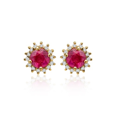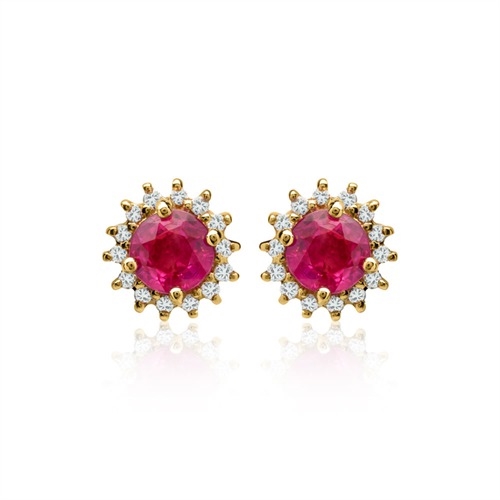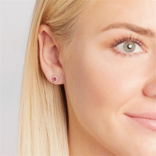 Runde ørestikker i 14 karat Guld med rubin og diamanter