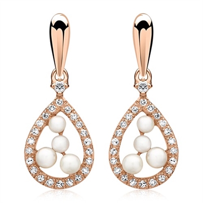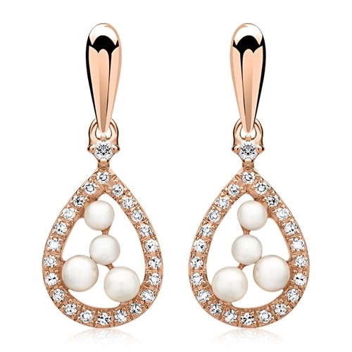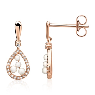 Ørestikker i 14 karat Rødguld med diamanter og perler