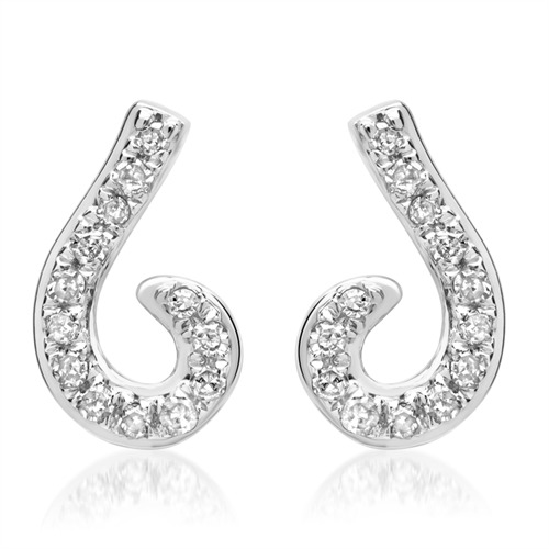 Bølgeformet ørestikker besat med 26 hvide funklende diamanter