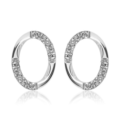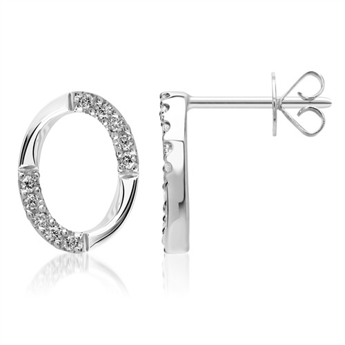 Elegante ovale ørestikker i 14 karat Hviduld med diamanter