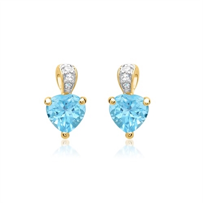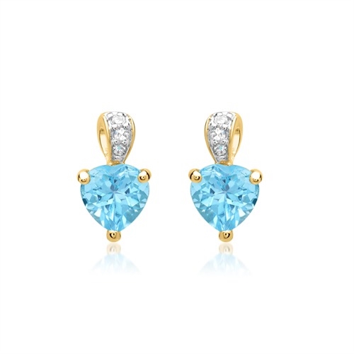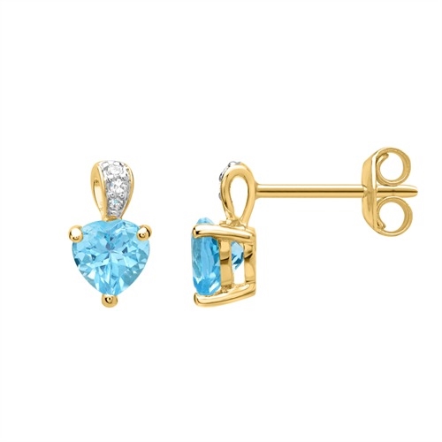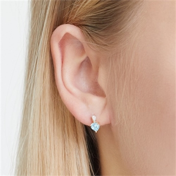 Hjerteformet ørestikker i 14 karat Guld med diamanter og topas