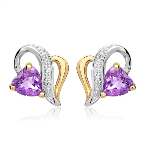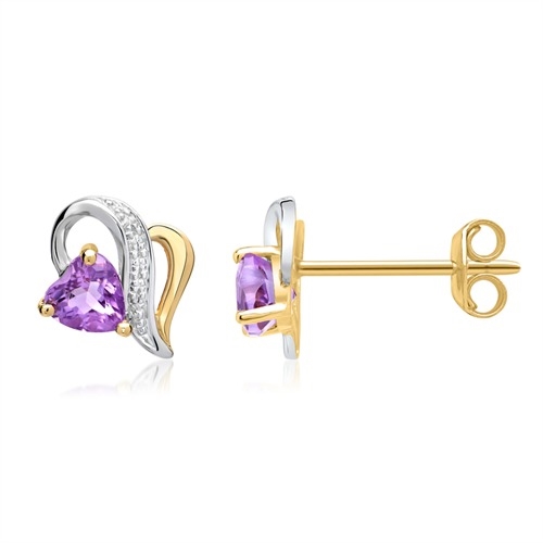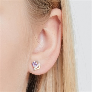 Ørestikker i hjerteformet design med funklende ametyst