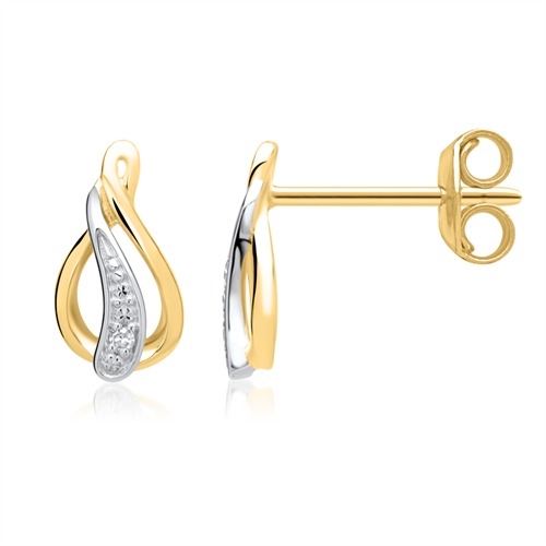 Dråbeformet ørestikker i 14 karat Guld og Hvidguld med diamanter