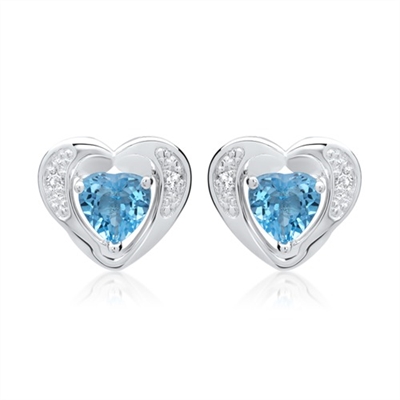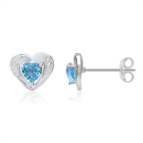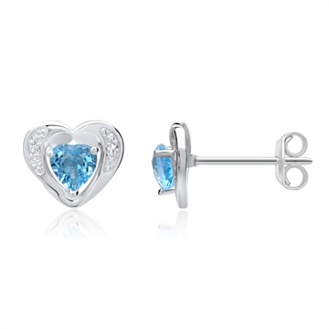 Ørestikker i hjerteformet design med 4 funklende hvide diamanter og topas