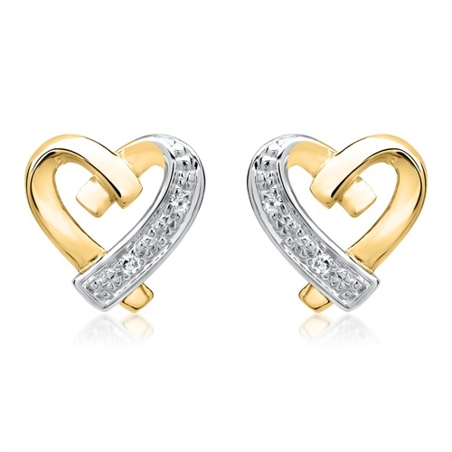 Ørestikker i 14 kt. Guld & Hvidguld m. hjerter