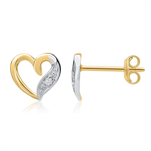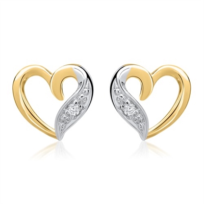 Svejende ørestikker i hjerteformet design med 2 funklende hvide diamanter