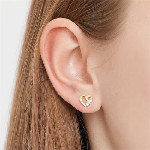 Ørestikker i 14 kt.Guld & Hvidguld m. hjerter