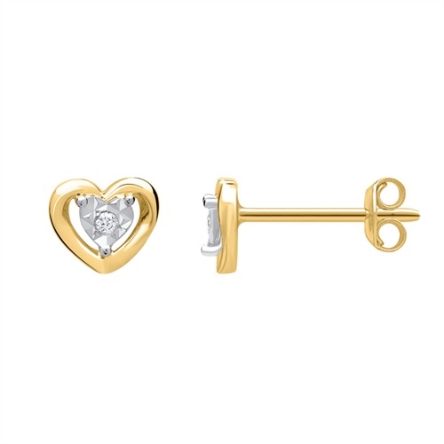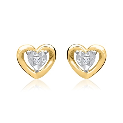 Ørestikker i 14 kt. Guld & Hvidguld m. hjerter