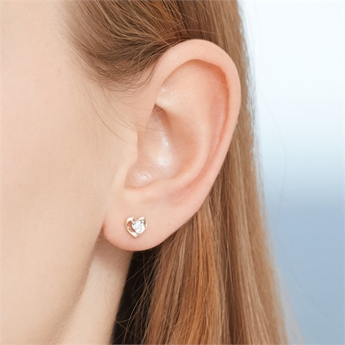 Ørestikker i hjerteformet design med 2 funklende hvide diamanter