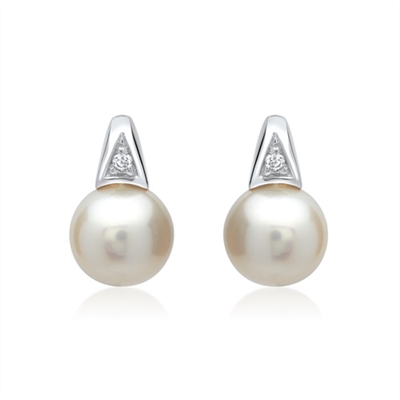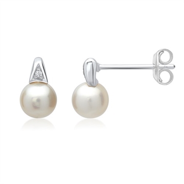 Skønne ørestikker med runde perler og funklende hvide diamanter